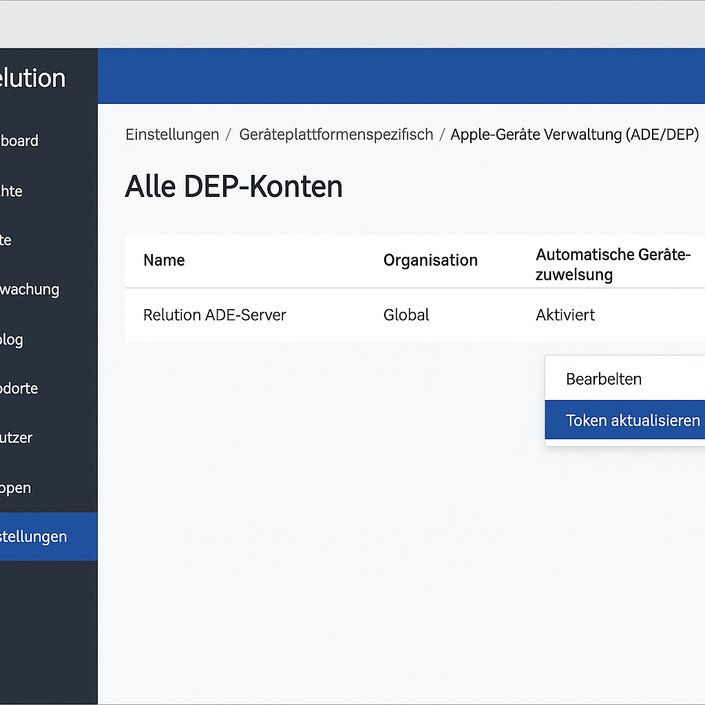 DEP-Token (Apple-MDM-Server-Token) in Relution aktualisieren